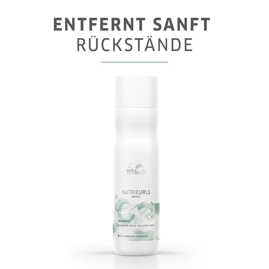 Merveilleusement léger, tout en étant nettoyant, nourrissant et une véritable aide contre les frisottis : C’est le shampoing Wella Nutricurls Waves pour les cheveux ondulés ou bouclés. Ce shampooing aide à définir les ondulations et élimine les résidus dans vos cheveux – pour des styles soignés qui se font remarquer !